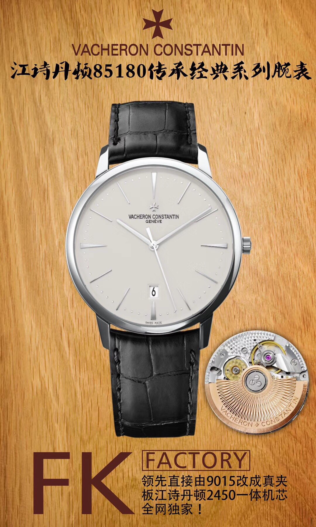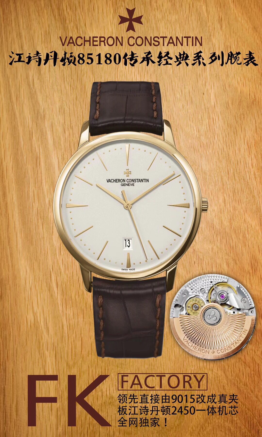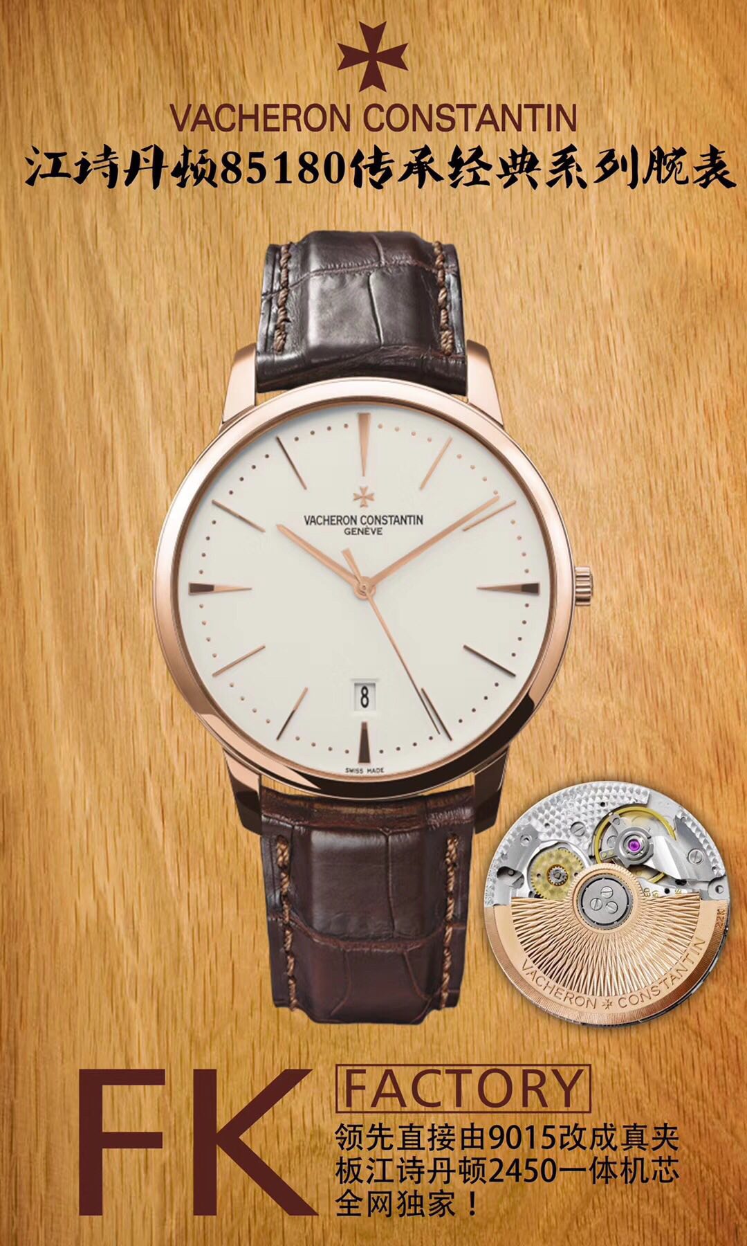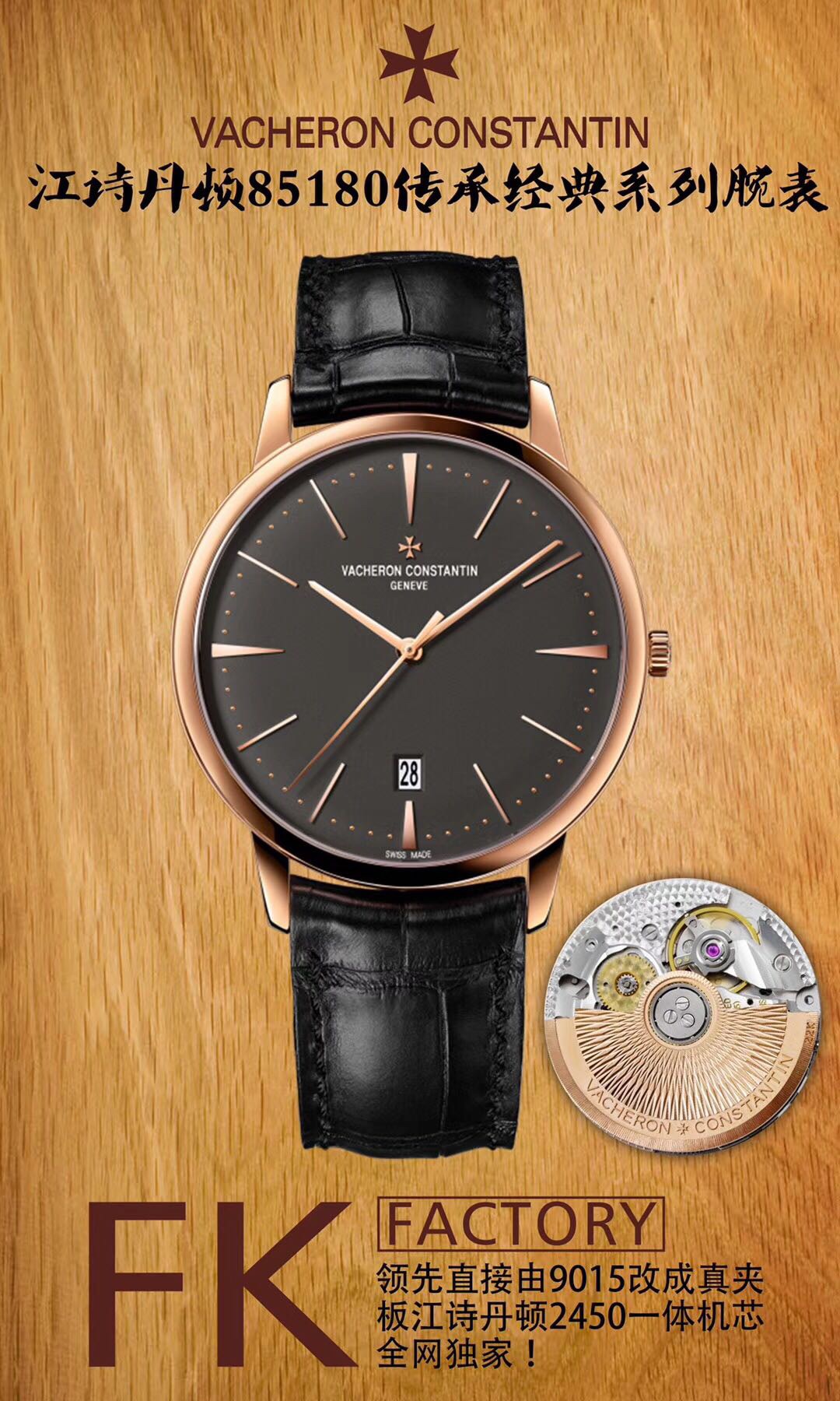 The era of integrated machines has arrived: FK Factory is at the forefront of the market, leading industry innovation! We are proudly launching: Vacheron Constantin 85180 Heritage Classic Collection wristwatch!The following innovations are of great importance:【Innovative Move】Currently, only the traditional method of 9015 flower washing is available on the market, while FK has taken the lead by directly modifying the 9015 into a genuine clip plate Vacheron Constantin integrated movement, making the movement slimmer and more stable! We urge all watch enthusiasts to recognize this movement!【Case】1. The 40mm diameter case is polished on both the side and the front, with a warm metallic luster refined by FK Factory, showcasing beautiful and natural lines. The crown is made of the same material as the case and also treated with a polishing process. Classic non-slip textures surround the Vacheron Constantin Maltese logo, as details determine success; meticulousness determines quality.2. Water Resistance Certification: All products from FK have a guaranteed standard of 100% water resistance at three atmospheres!3. Exclusive Customization: 22K automatic rotor color; it is neither gold nor rose gold, but specially formulated 22K gold! 【Strap + Buckle】The strap has been upgraded to ultra-thin and high-quality Italian cowhide, paired with a semi-Maltese cross pin buckle. When buying Vacheron Constantin, make sure to choose FK; you won’t go wrong! — FK Formal Wear Family!-If payment fails, please contact online customerservice