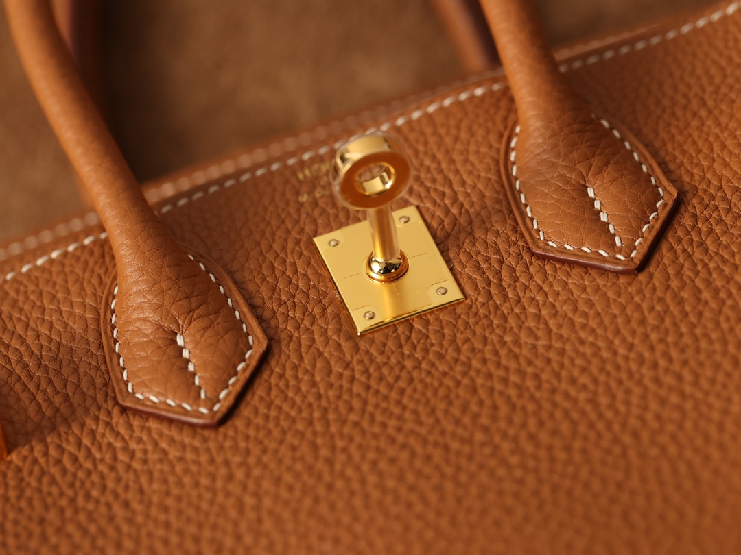 Togo Leather: The most classic Birkin leather. The surface is made up of uniform granular patterns, similar to the texture of a lychee fruit, and has a lustrous appearance. The leather is relatively hard, which makes it easy to maintain the shape of the bag, relatively lightweight, has a soft touch, and is durable and wear-resistant.