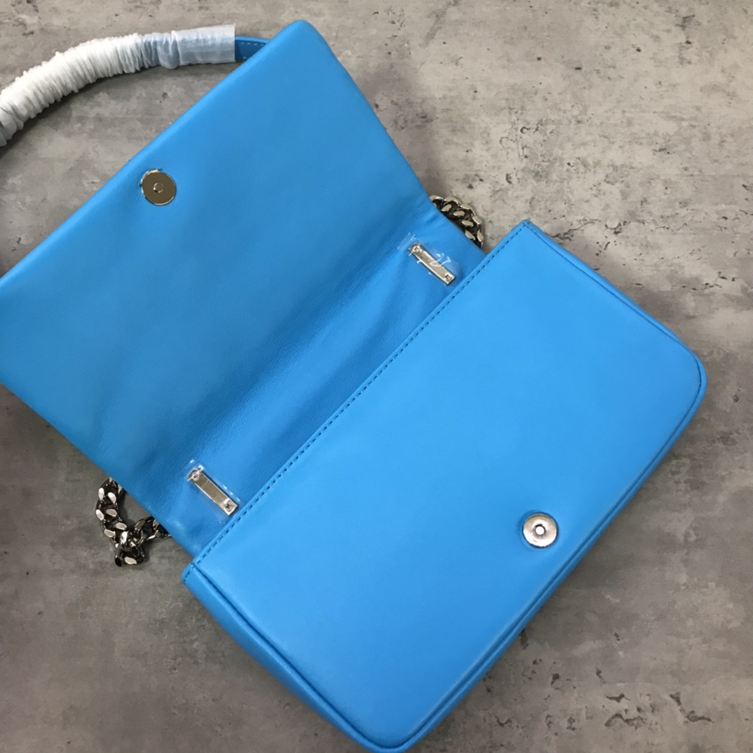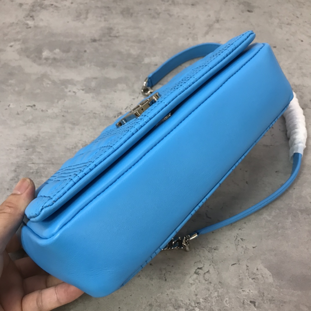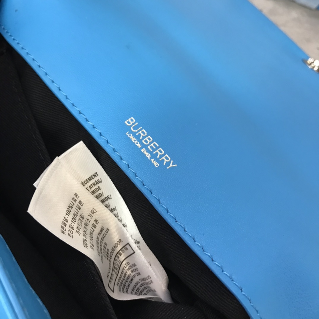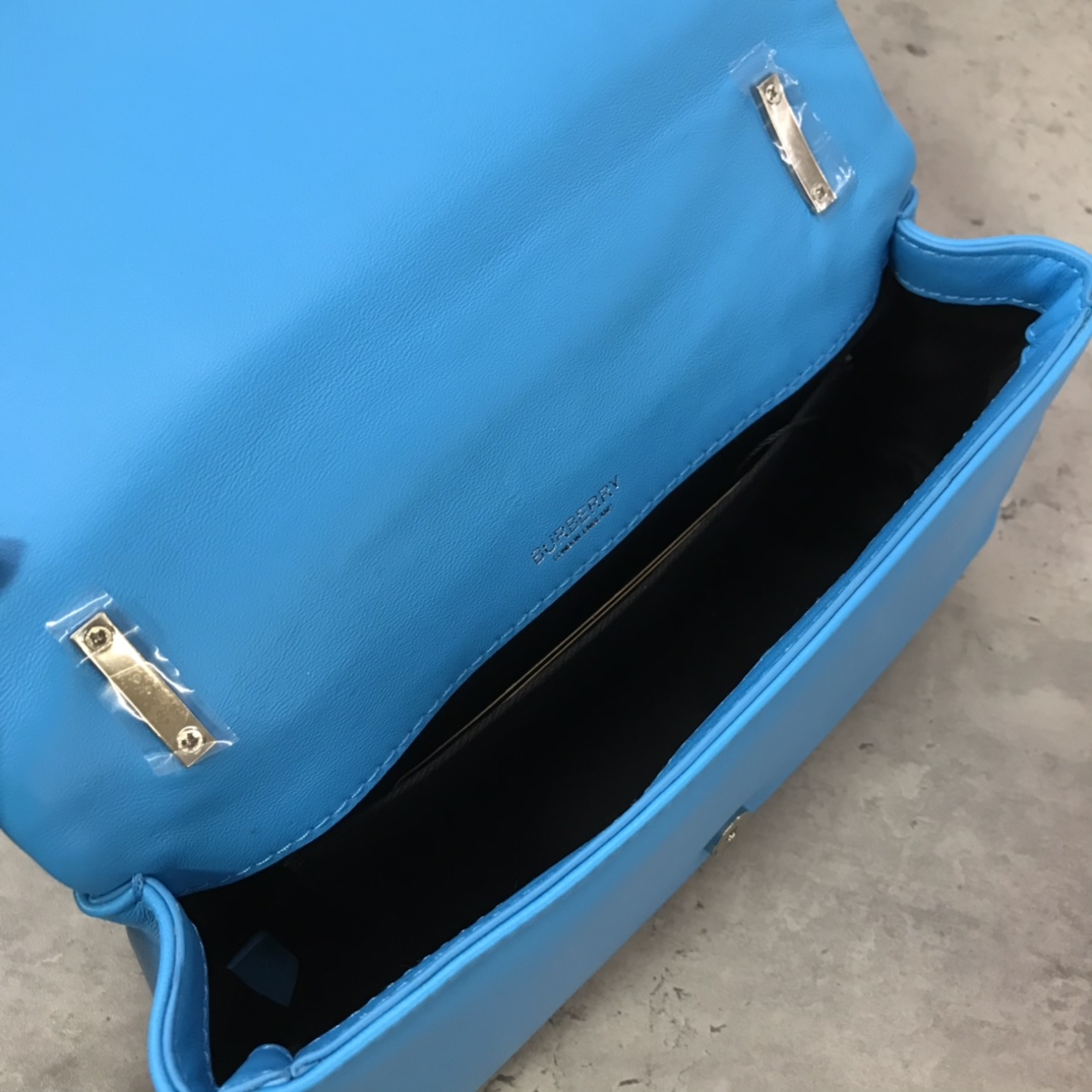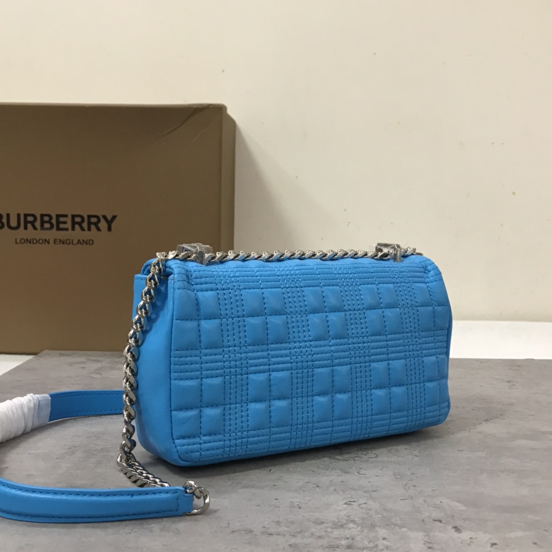 The exquisitely quilted runway-inspired “Lola” bag from premium Burberry is expertly crafted from Italian-tanned lambskin, embellished with the Thomas Burberry logo, and finished with a sophisticated chain strap. It can be carried on one shoulder or crossbody. 23 x 6 x 13cm adjustable chain and lambskin shoulder strap, one interior slip pocket, top flap with magnetic closure, hand-painted lacquer edges, and lustrous metal hardware.