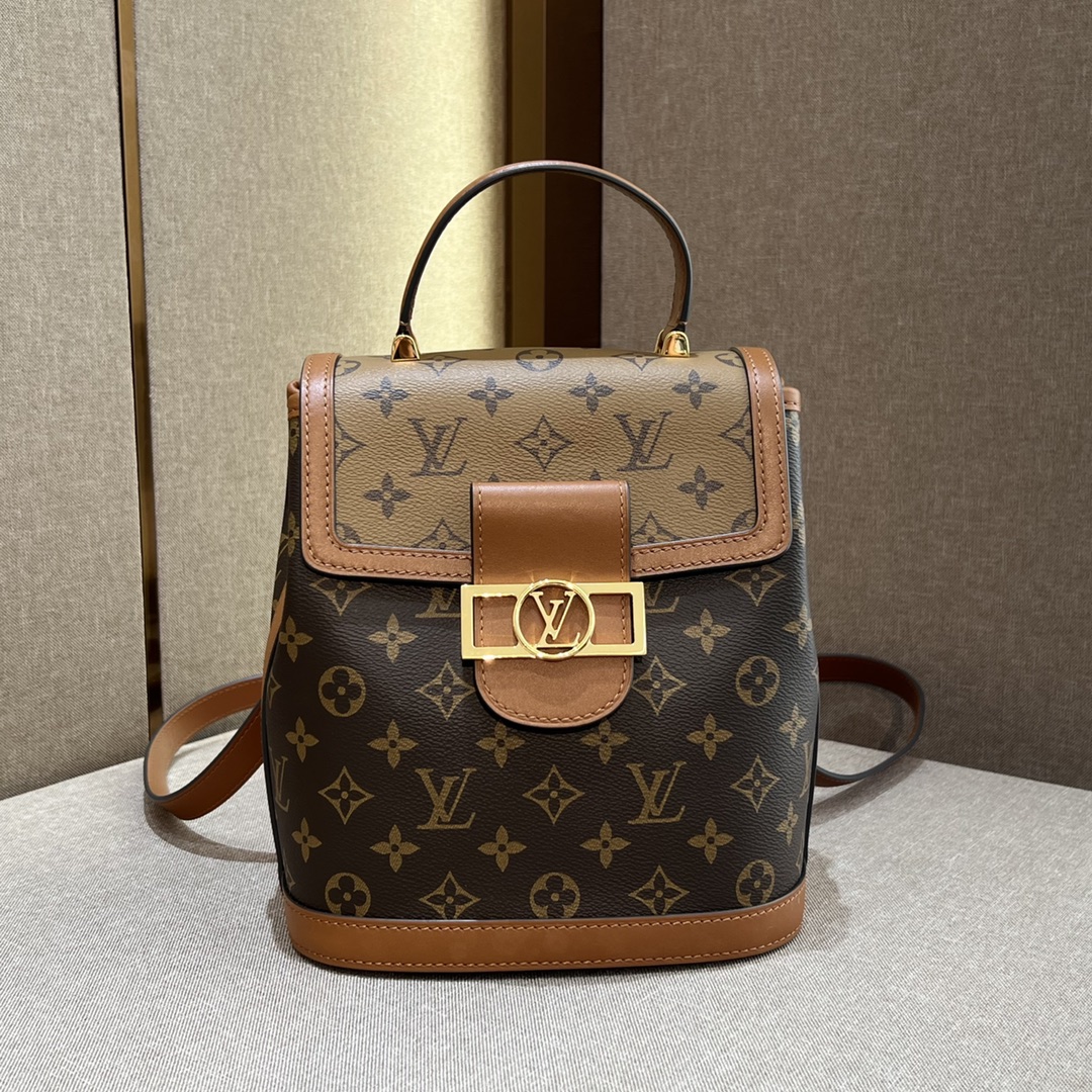 Daphne Monogram Canvas and Cowhide Gold Buckle Backpack 🎒