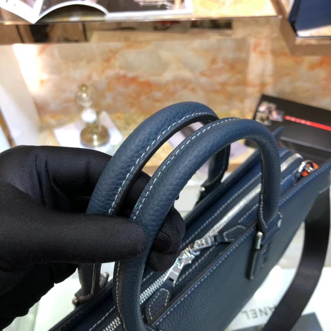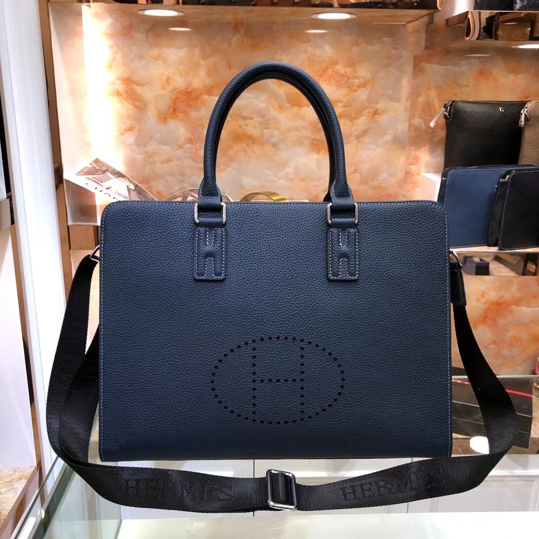 Hermes’ latest men’s briefcase. Made from imported genuine calfskin, this bag is soft and feels amazing. It features high-end hardware and a zipper pull. Exquisite workmanship and a Hermès-branded lining. Stylish and casual, this bag offers a sophisticated and elegant look. Available in two sizes.