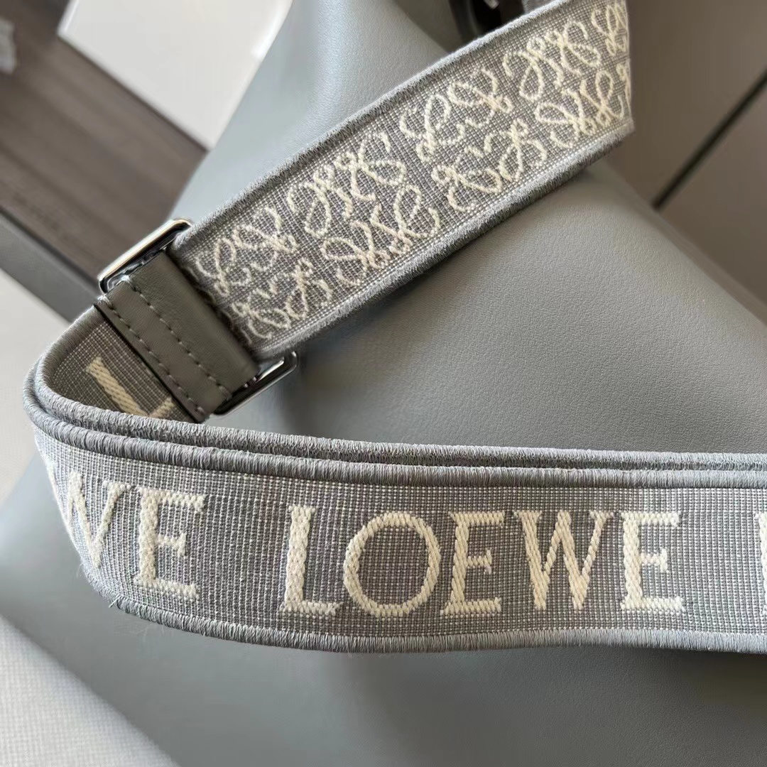 The 𝒄𝒖𝒃𝒊 Crossbody Bag is a spacious and soft handbag* that easily adjusts to your body shape. It features a 𝑳𝒐𝒆𝒘𝒆 jacquard strap. It can be carried crossbody with an adjustable shoulder strap, a zipper closure with a calfskin zipper pull, and an interior slip pocket that can accommodate a 13-inch laptop. Lined in herringbone cotton canvas with anagram embossing.