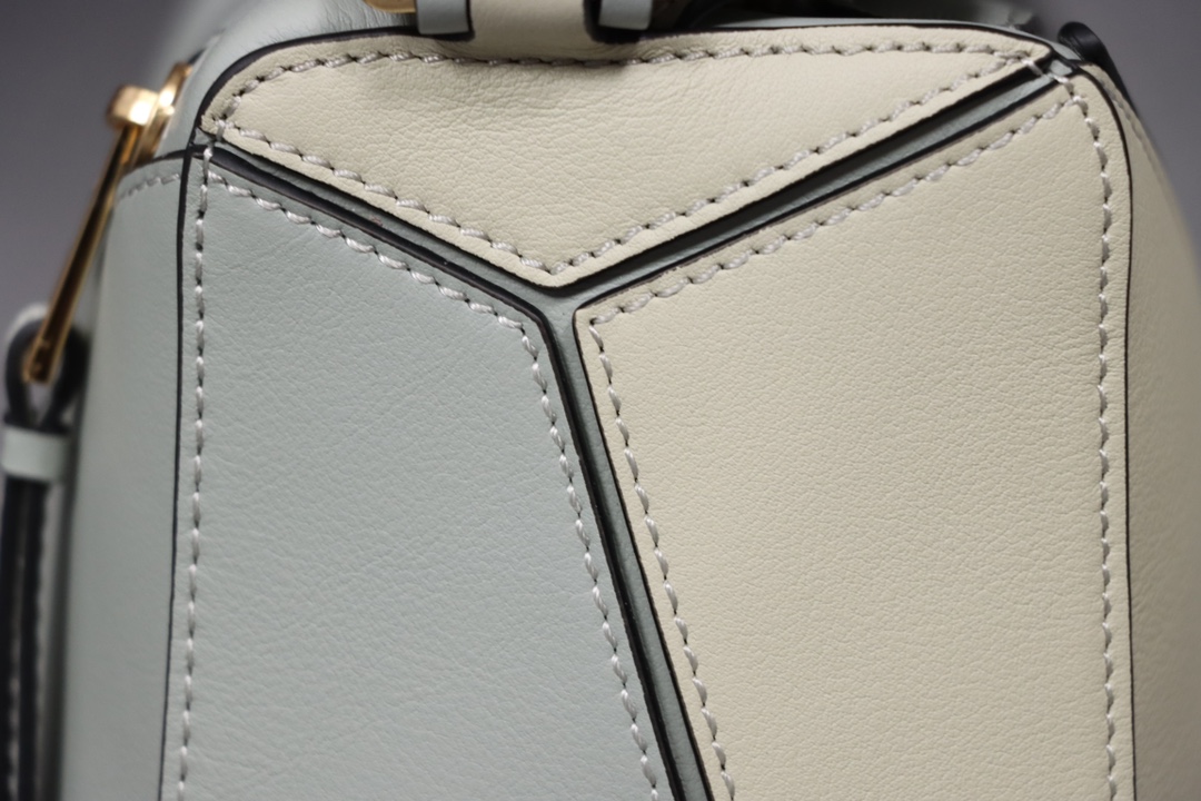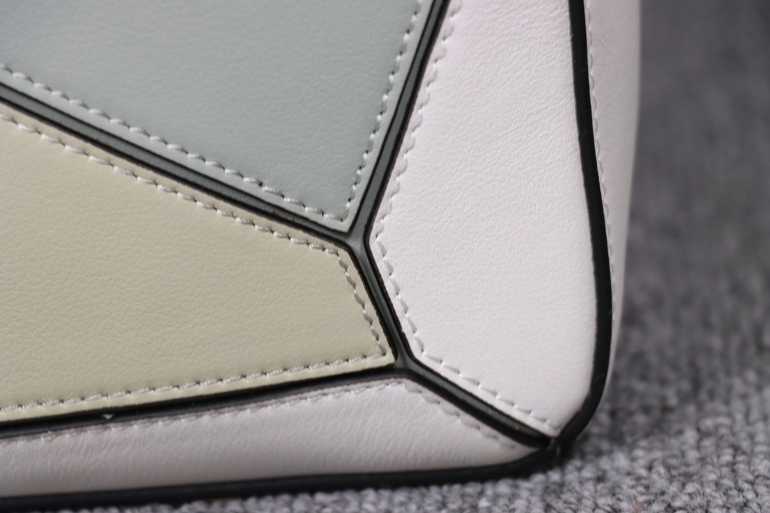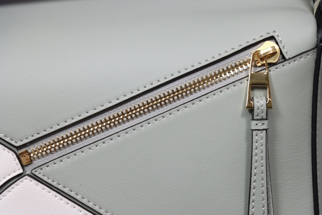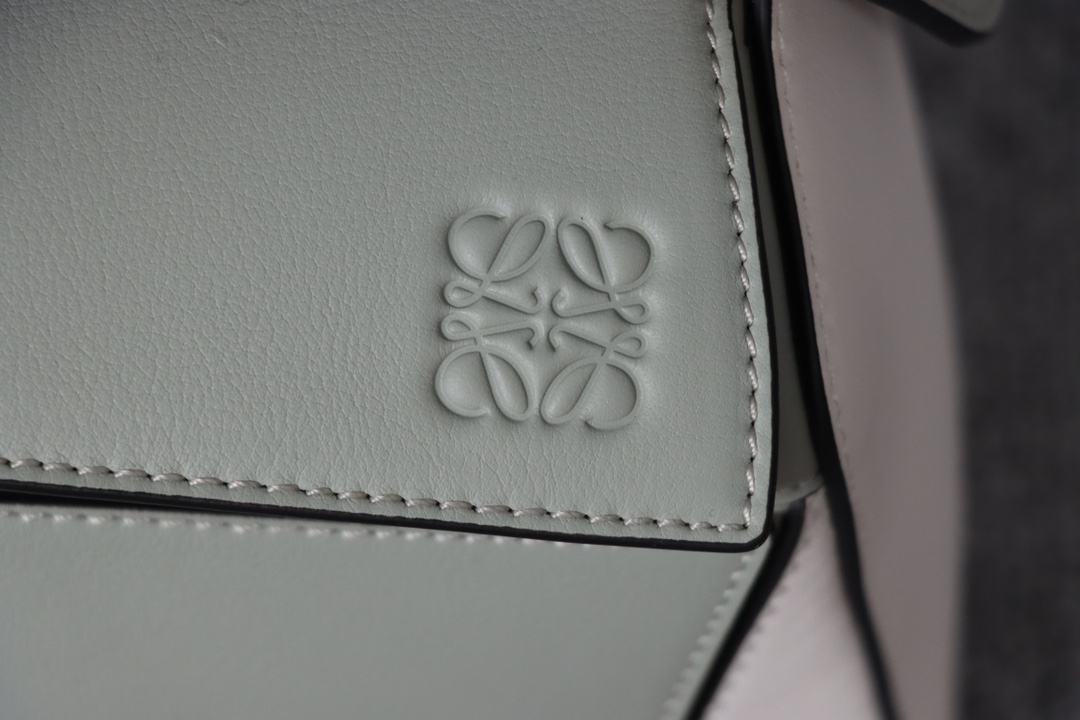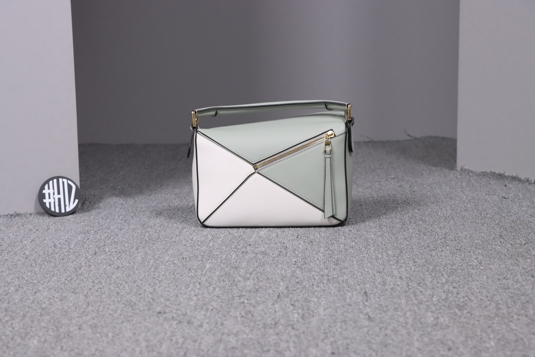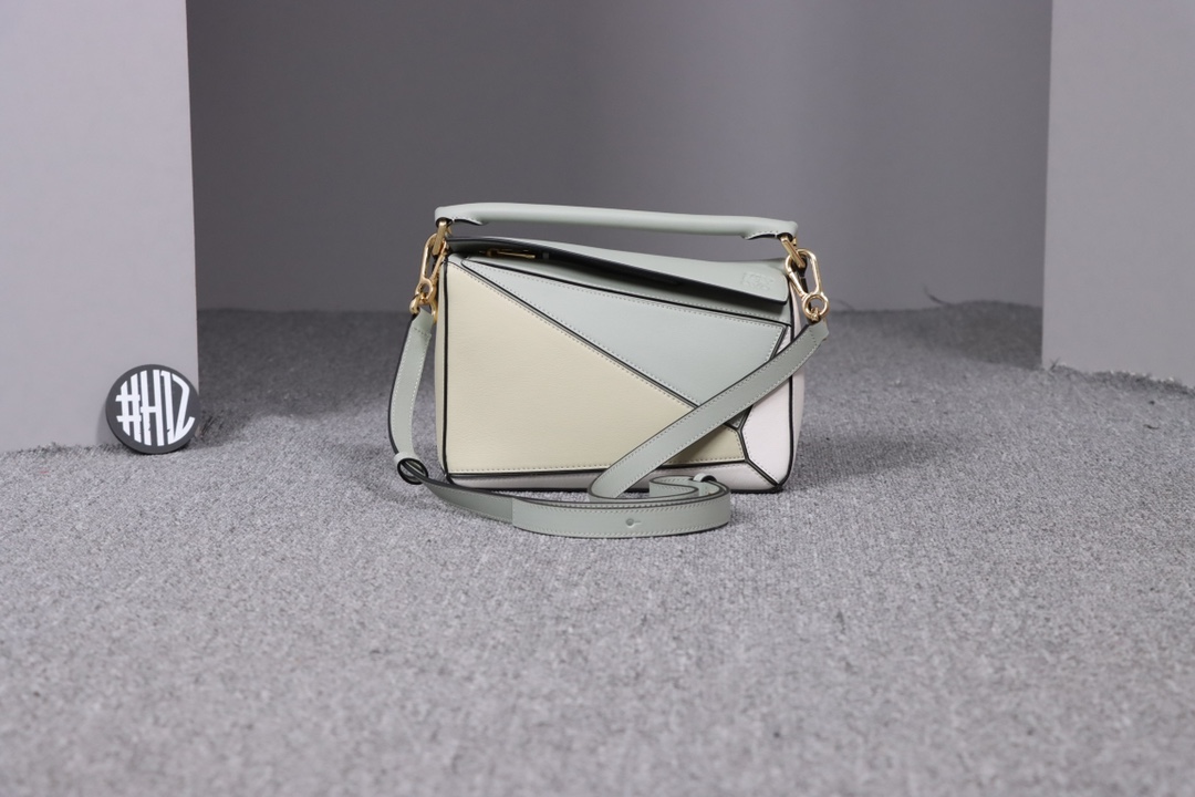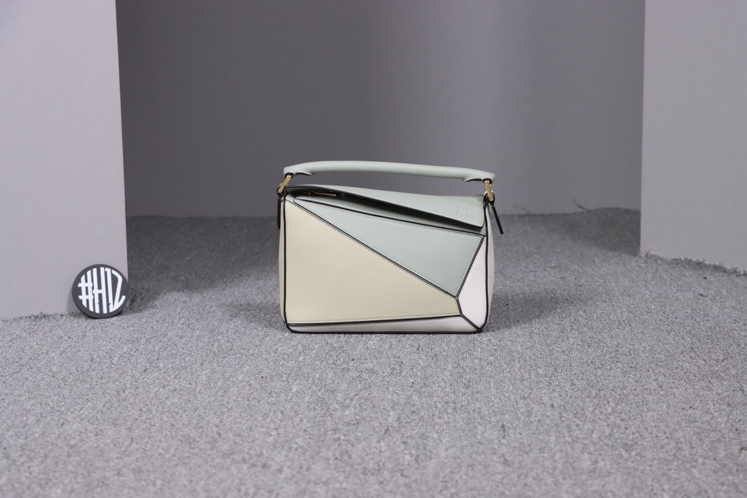 Loewe’s classic small PUZZLE bag in a light green colorblock pattern.