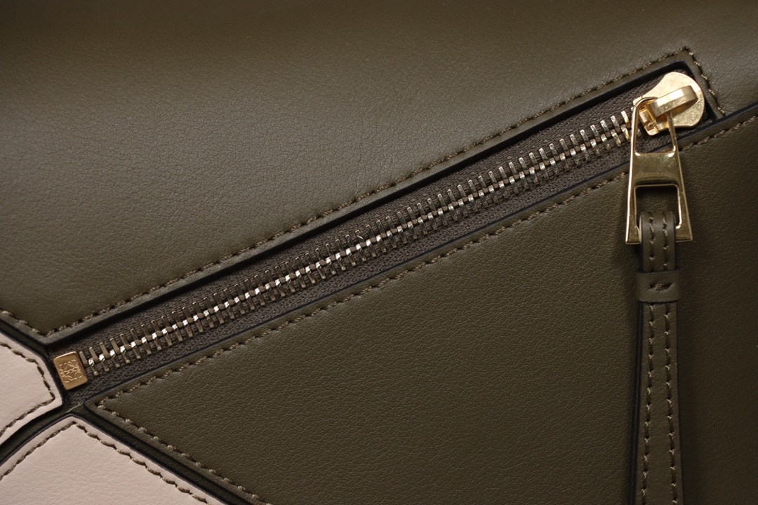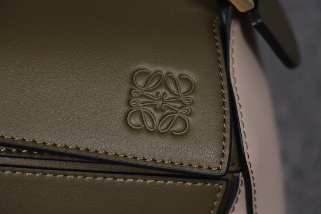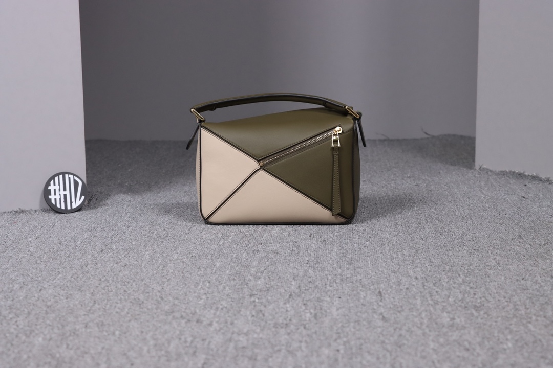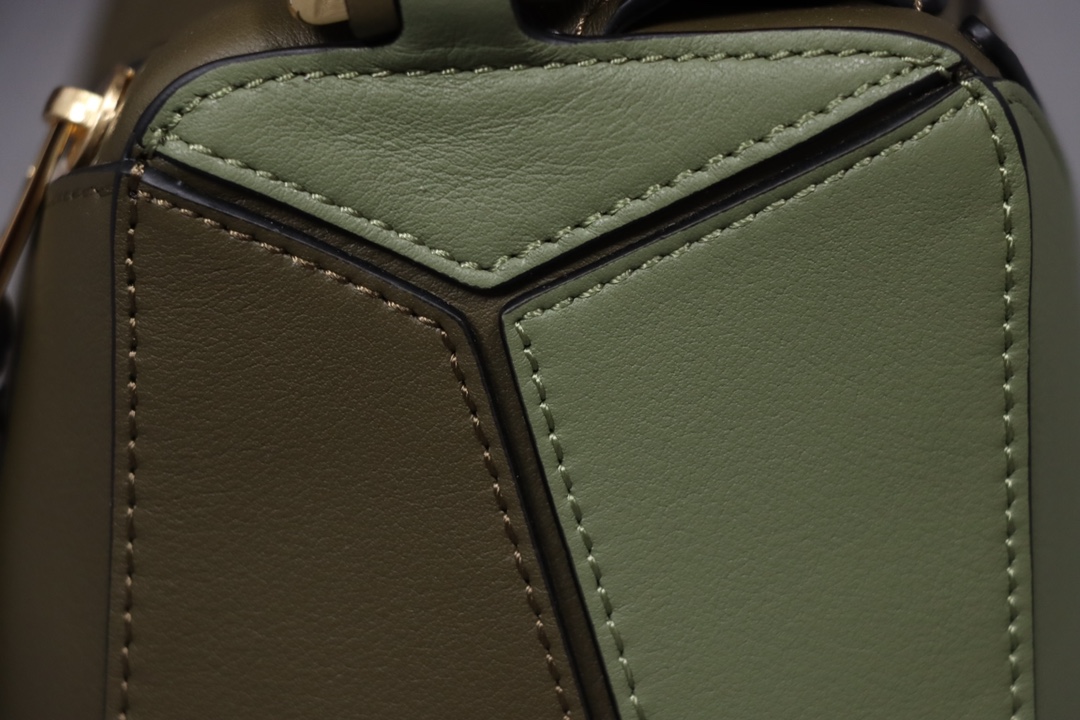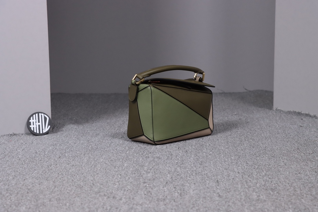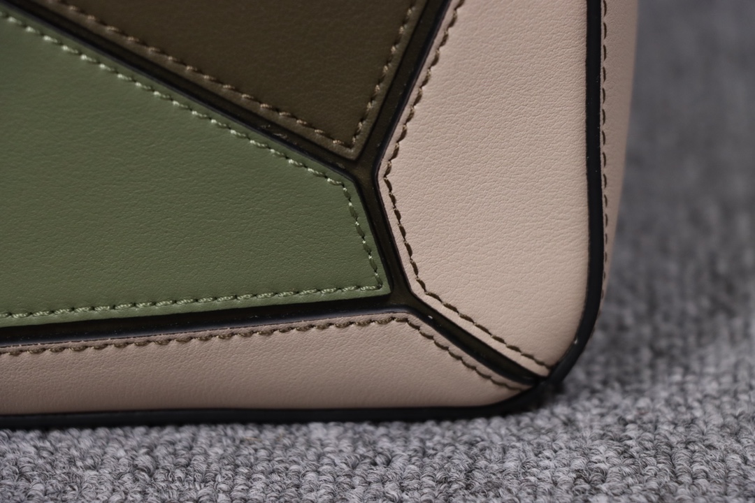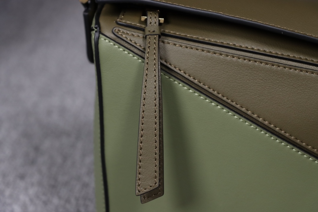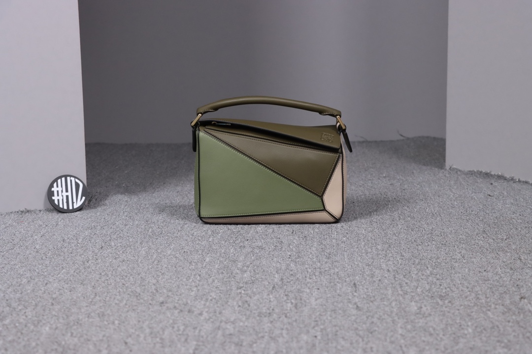 Loewe’s classic small PUZZLE bag in a light green colorblock pattern.