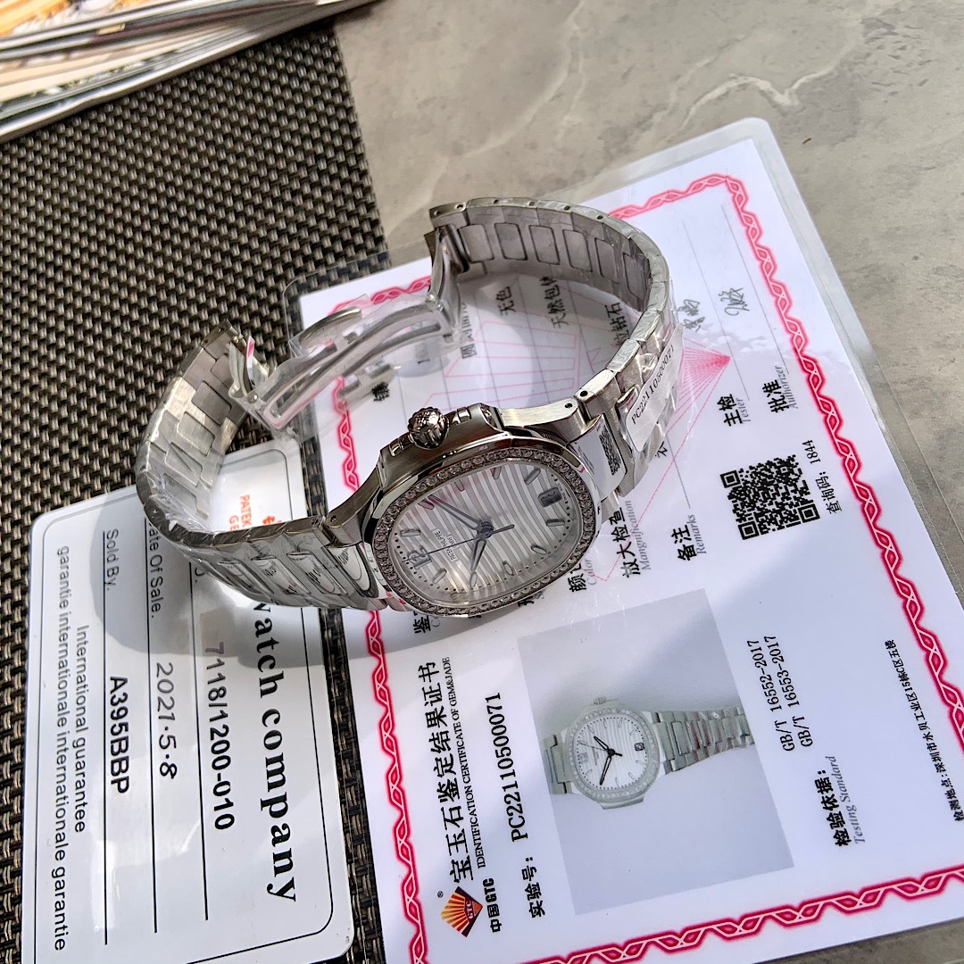 Latest release! Patek Philippe Nautilus 7118 series! Women’s model 35.2mm. Designed specifically for women! Perfectly embodies the essence of Patek Philippe in the most minimalist way, blending bold design with pure tradition, this watch has become one of Patek Philippe’s flagship products! Made from imported stainless steel with multiple crafted polishing. The dial is set with 56 VS1.8 real diamonds. Approximately one carat! Comes with an authoritative GTC certification from China. 100% guarantee that each diamond is genuine and authentic. Verifiable and traceable! Equipped with a custom Cal.324 fully automatic mechanical movement. A small but powerful heart consisting of 100 components. Truly achieves zero repairs and zero errors! The dial design is quite unique, featuring a distinctive relief dial with exquisite three-dimensional characters. The entire watch exudes a strong three-dimensional and high-end feel! The glass is made from sapphire crystal with ultra-high hardness. Anti-reflective and scratch-resistant. The 904 stainless steel bracelet is extremely comfortable and fits well for a variety of wrists. Paired with an original butterfly clasp for easy wear. The ultimate comfort. Its unique shape and style have never gone unnoticed, featuring both round and square elements, a non-round, non-square design that exudes elegance and sophistication! Instantly recognizable as Patek Philippe with its striking colors, showcasing its unique charm.-If payment fails, please contact online customerservice