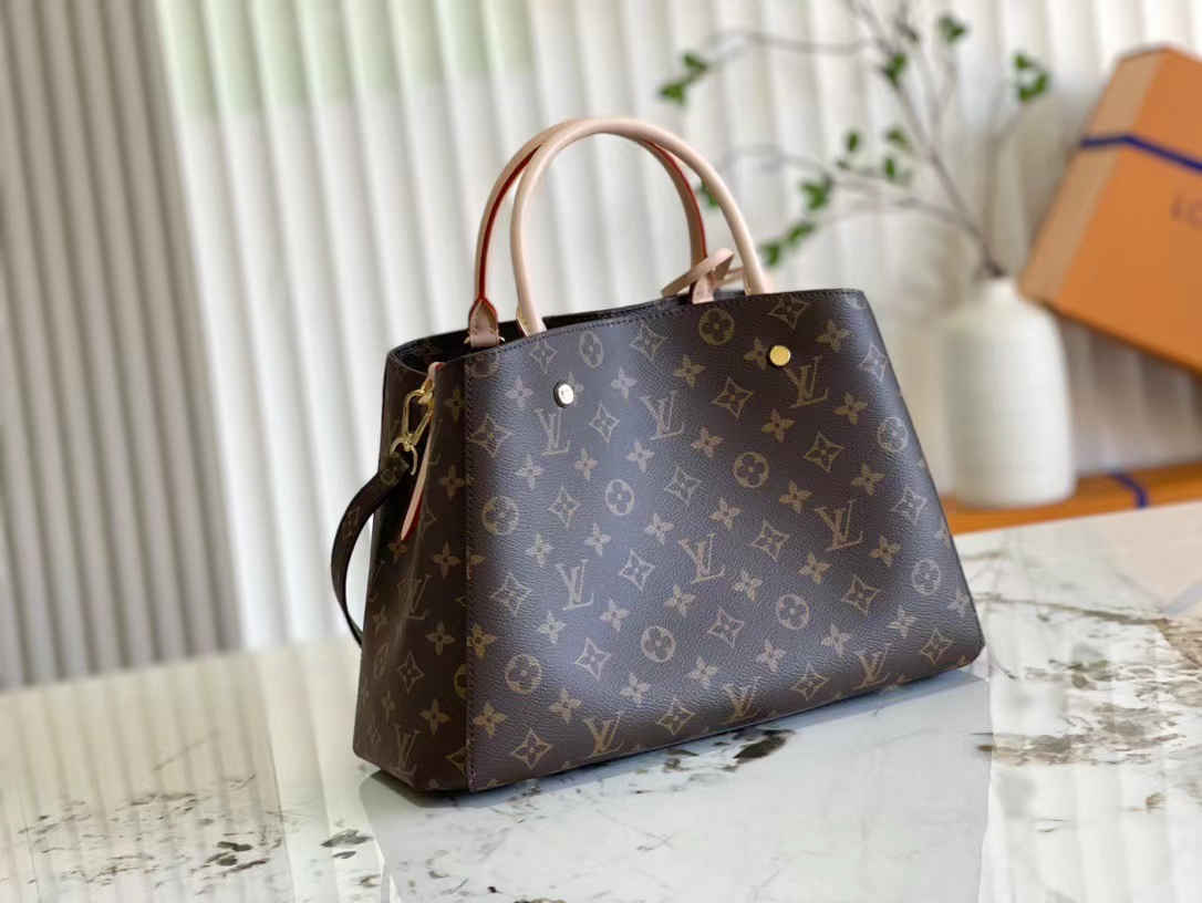 Top-quality original M41056 MONTAIGNE Medium Handbag M41056 Made in iconic Monogram canvas, the Montaigne handbag combines a playful, structured exterior with a spacious, organized interior, making it an ideal business bag. This handbag features a detachable shoulder strap for hand-carrying, arm-wrap, or shoulder-carrying. Dimensions: 33 x 23 x 15 cm