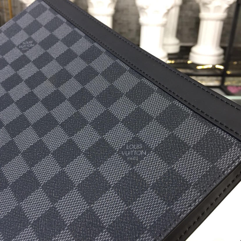 LV’s premium POCHETTE VOYAGE clutch, N41696, comes with a full set of sealed packaging and invoices for overseas purchases. Made with five components, this compact and stylish Pochette Voyage medium is crafted from Damier Graphite coated canvas. Versatile and versatile, it can be carried in your bag as a travel bag or carried in your hand. It also offers a stylish touch. Spacious interior with support panels ensures easy access to essential items. Size: 26 x 6 x 20.5 cm.