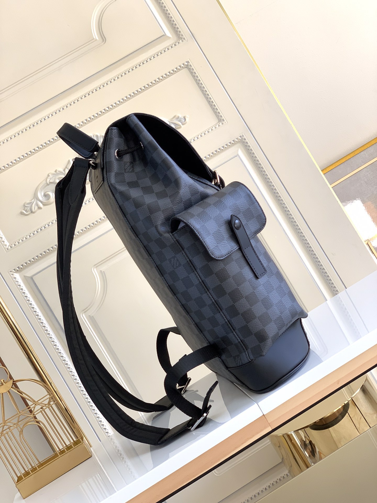 The multifunctional Christopher Small Backpack, N43735 Monogram, N41379 Black Grid, and Black Grid, embodies the rugged and unpretentious spirit of a hiking backpack in Monogram canvas. Its chic design is suitable for both work and play, showcasing a high-quality lifestyle. 41 x 47 x 13 cm (L x H x W)