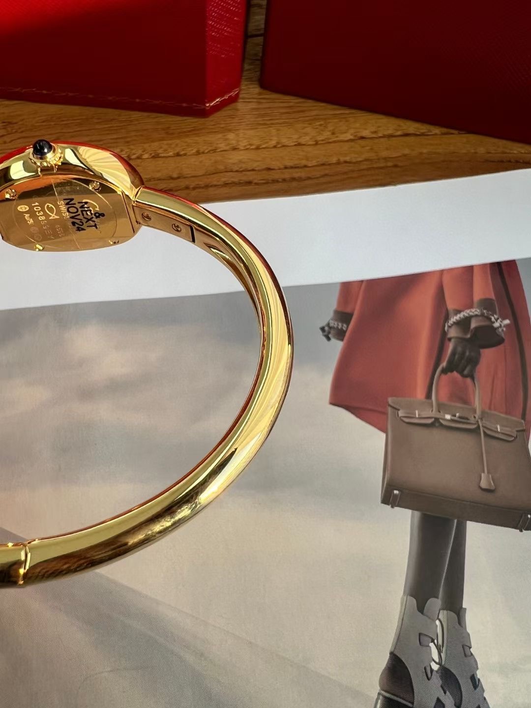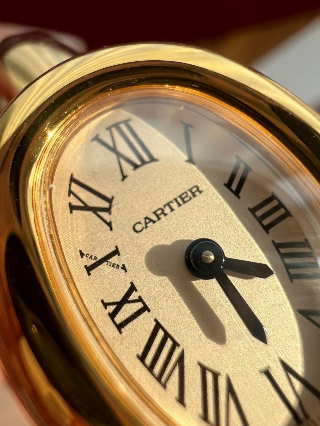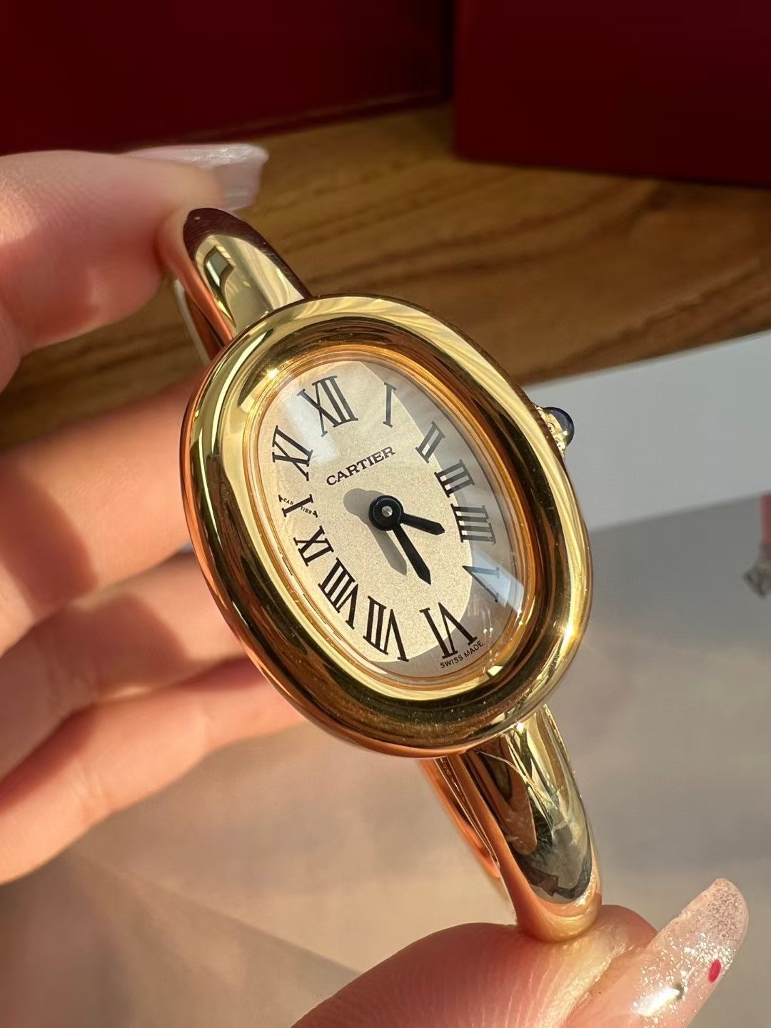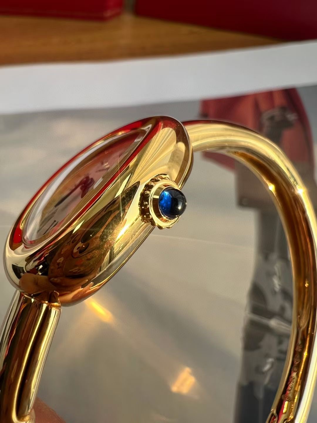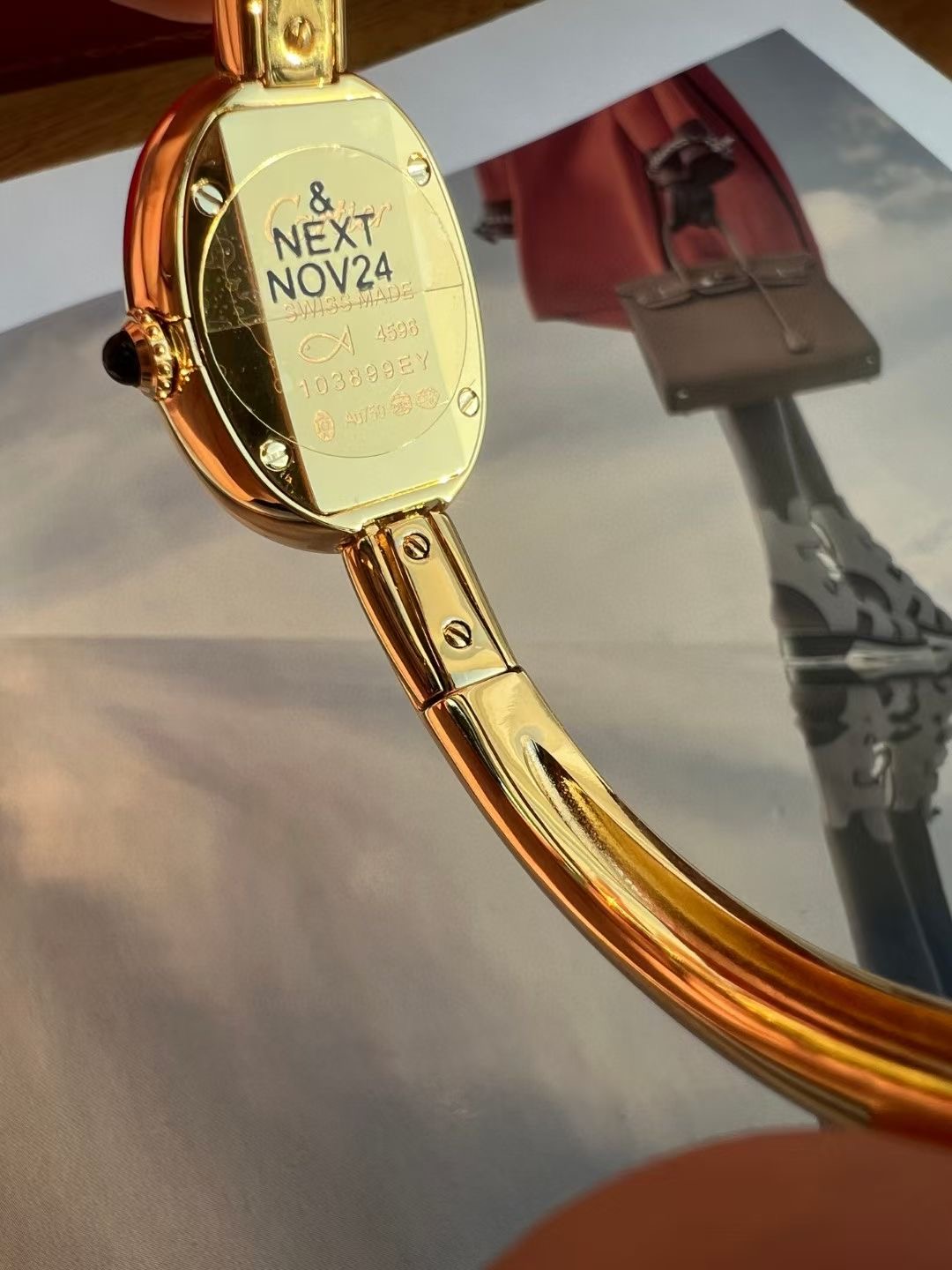 Swiss original imported quartz movement. Stainless steel gold-plated case, silver-plated dial, sword-shaped blue steel hands, sapphire crystal glass. The Cartier watch reinterprets the traditional round watch shape, extending the round form into an oval shape! The watch draws inspiration from the geometrically distinctive minimalist oval shape, featuring a smooth and plump oval outline, fully showcasing its delicate charm!-If payment fails, please contact online customerservice