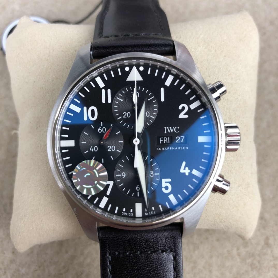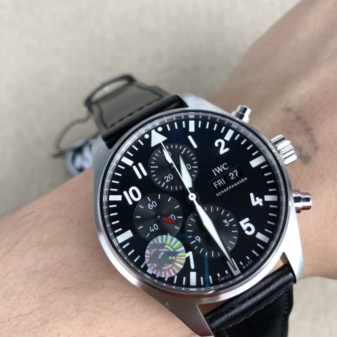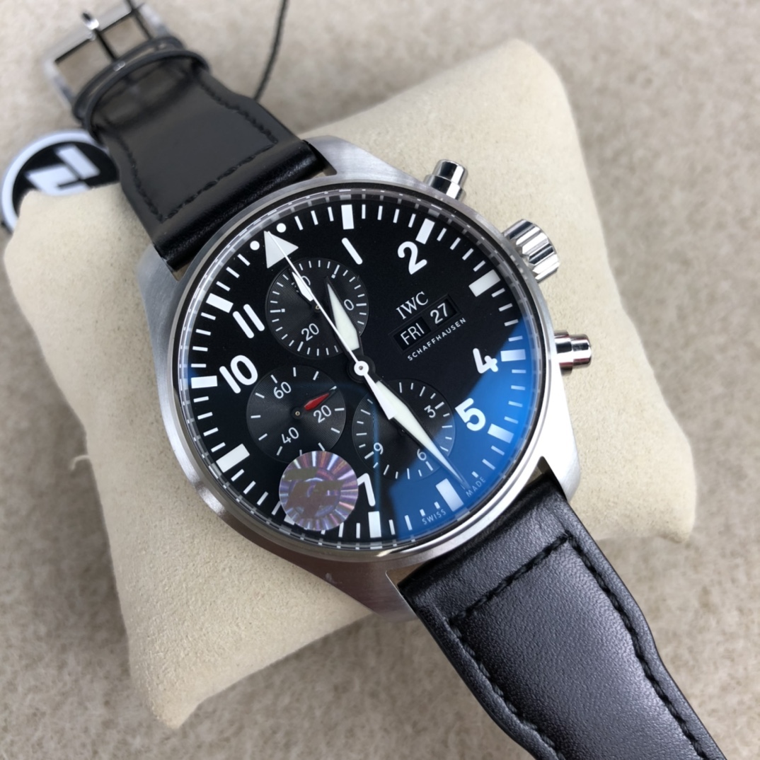ZF Classic Collection [Soaring in the Sky, Every Second Must Be ‘True’]ZF presents the IWC 3777 Pilot Chronograph series, with a movement that is in sync with the original. The tail of the hands is slightly curved, and it features a double-sided anti-reflective blue coating. This achieves an extraordinary classic.[Craftsmanship] The watch measures 43mm x 15mm. The case is designed as a two-piece set, with the bezel and middle case integrated. The challenge lies in polishing the right-angle transition where the middle case meets the bezel (which requires a lot of handwork). With the passage of time, the simulation remains reliable, and the craftsmanship is mature. The lines are clear and give a sense of three-dimensionality. It authentically restores the series’ unyielding superior quality.[Movement] It uses a TOP-grade Shanghai 7750 movement, which is not only structurally synchronized with the original, but also the winding, date adjustment, operation of the hands, and chronograph functions align completely with the original.[Wonderful Details] 1. ZF continues the traditional craftsmanship of IWC, using dual-layer light blue anti-reflective coating. 2. The tails of the minute and second hands are slightly curved, matching the details of the genuine product.If payment fails, please contact online customerservice